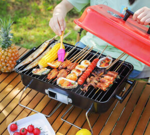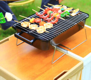 Constructed of high heat resistant stainless steel. This stainless steel barbecue grill is portable use at ground level or table top. The indoor barbecue grill has cooking surface with a nonstick coating for searing foods just like on an outdoor grill. Non-stick surface provides easy clean-up. Open grilling surface allows for a smokey, barbecue flavor. The charcoal barbecue grill is a simple and delicious way to get the backyard grilling experience anywhere you choose.